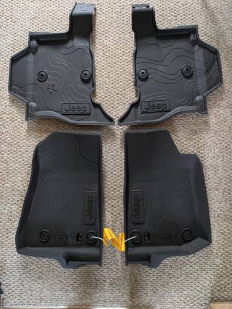 2021-2025 Jeep Wrangler JL, 4 Door Rubber Floor Mat Set Condition is NEW. The floor mats in the pictures. Full SET Price is FIRM. Local pickup in Niles / Illinois Mopar parts numbers: 82216625AB...