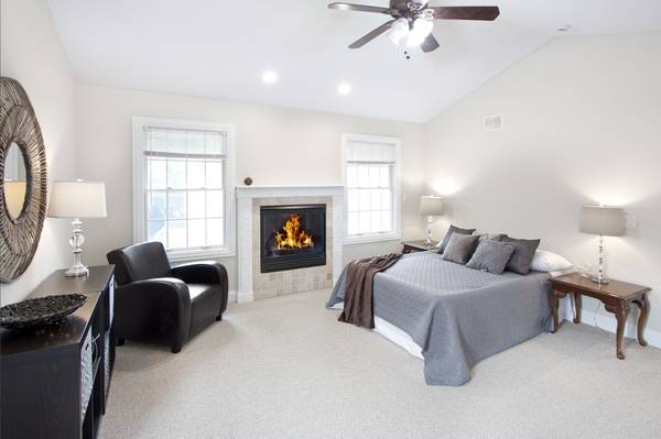 Upstairs, the spacious primary suite is a true retreat with vaulted ceilings, a gas fireplace, jetted tub, dual comfort-height vanities, and an oversized walk-in closet with organizers.