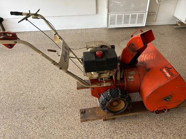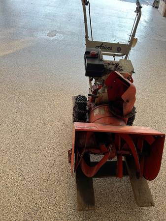 Older Ariens snoblower (maybe 1966) 6 hp, 24" I have original manual. Starts and runs good. On 2x6 platform with casters so it does not scratch garage floor.