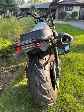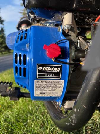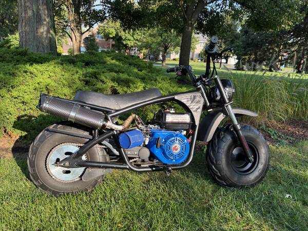Awesome Mega Moto 212, Tillotson 212, Stage1 mod kit, custom exhaust, pull start with dual coil charging system upgrade. LED Hi/Low headlight, side markers, Tail & brake lights, Horn. Very low hours, synthetic oil used, Torque converter equipt, Front & Rear hydraulic disc brakes. Front suspension fork. 10psi tires. Clocked at 48 mph.