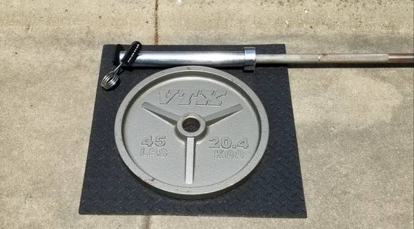 Olympic barbell with 2 45lbs plates for sale, asking $225 obo.