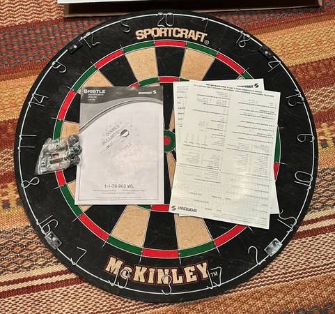 SportCraft McKinley Bristle Dartboard Official 18” Size 1.5” Thick High Tensile Steel Hand Wired Spider New In Box with mounting hardware Porch pickup available $45 West Dundee