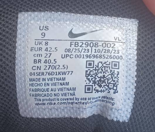 Used Nike FB2908-002 Gray Baseball Cleat's youth size 9.