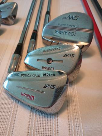 13 total clubs! Alas, I no longer golf, but these clubs yet yearn for their next trip to the tee. Perhaps you can give them something I could not... a sub-100 round. The heads have some wear from use, but overall, they are in quite good shape. They have been maintained and kept in storage for over a decade, and they would be particularly well-suited for a young golfer or someone giving the sport a go for the first time. Does that sound like someone you know? If so, maybe you could give these clubs a happy new home!