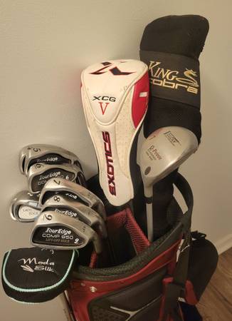 Thanks for looking at this full women's right handed set featuring Tour Edge irons, wedges and putter and 3 wood, Cobra driver and Sun Mountain bag.