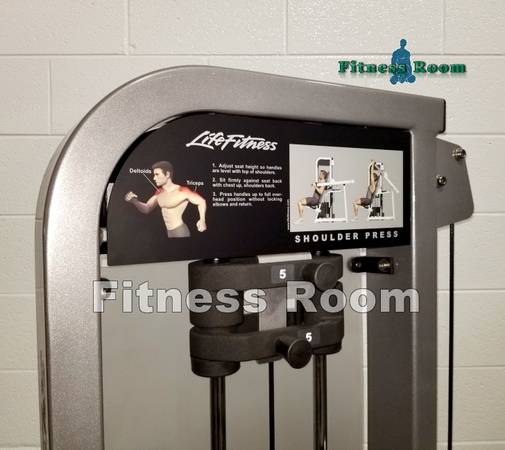 Up for sale is a Life Fitness Pro 2 shoulder press machine. This item is in like new condition. It can be taken apart for easy transportation or moving through the doors with limited access.