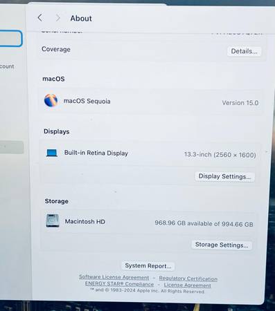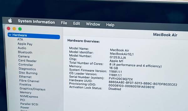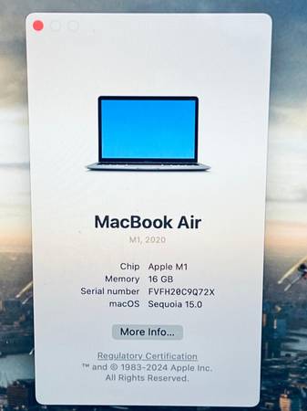 I am selling Apple Macbook Air, 13”, 2020, Retina Display. I factory reset it, so it's like new, and all accounts and data is removed. It is fully functional. It is in good condition. You can come and test it out no issues.