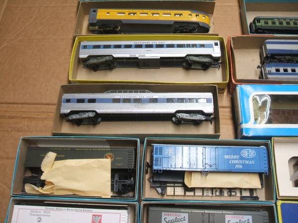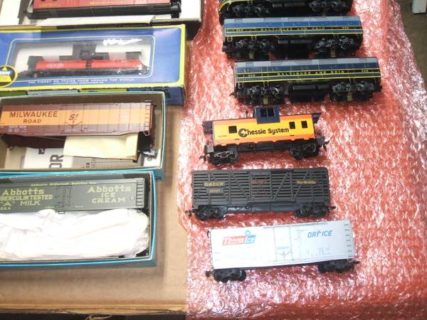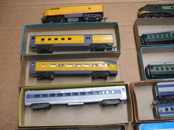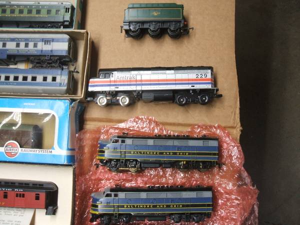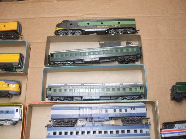 UP FOR SALE ; 4 ENGINES , 9 PASSENGER CARS , 17 FR8 CARS . USED MAY HAVE PARTS MISSING. PICS TELL ALL . SELLING AS IS . ALL NOT TESTED. SOME HAVE BOXES. SOME ARE KITS.