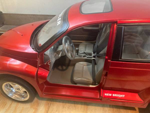 New Bright 1/6 or 1:6 Scale PT Cruiser 9.6V Radio Control RC ,Broken Drivers Side Door ,For Parts ,untested ,Vehicle dimensions are 26” long ,12” wide ,and 9.5” tall ,I do not have the remote or the battery pack ,broken parts are included ,these were made in the early 2000’s .$35.00 obo