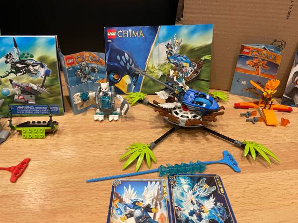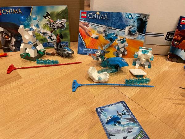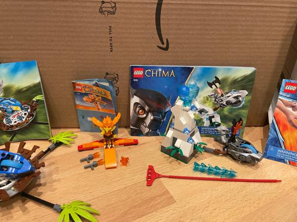 We have 10 sets of LEGO Chima. They are sets 30256, 30263 (missing head, replaced with plain black), 30264 (missing two black c-clamps), 30265, 70105, 70106 ( three green plants broken), 70112, 70131, 70150 (missing orange staff, replaced with black) and 70151. All sets complete unless noted above. Selling as a lot. Asking $140 or best offer. Willing to meet around Vernon Hills for a cash exchange. Thank you.