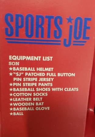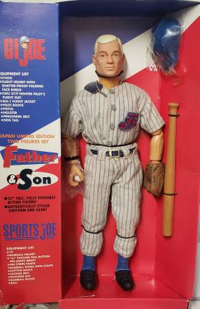 I also have a 1997 Japan Exclusive Sports Joe from the GI Joe Father and Son Boxed Set. This is the 12" son action figure wearing the baseball outfit only, no GI Joe father included. He comes with everything shown plus the cardboard insert. No outer box included. This set is $45.