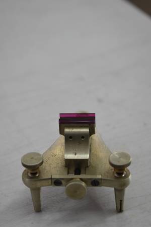 Levin poising tool in fitted case. Used for watch and clock balance wheel servicing. Tool has perfect ruby jaws. Bubble level is perfect. Leveling feet function correctly.