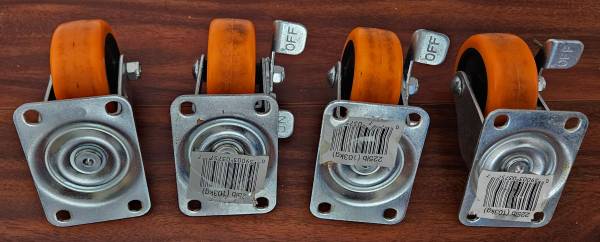Heavy-duty caster wheels with locking mechanism. 225 lb per each, excellent condition...
