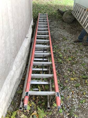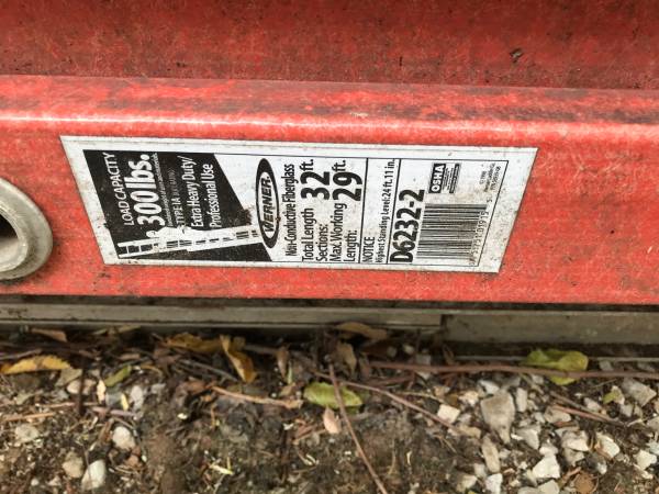 Fiberglass extension ladder 300 lb weight 32 ft. Cash only and pick up.