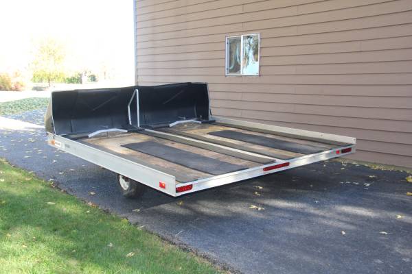 10 x 101 tilt snowmobile trailer for sale. Lights work, tires are good and it comes with a spare. $1200 Call anytime if interested… ...thanks!