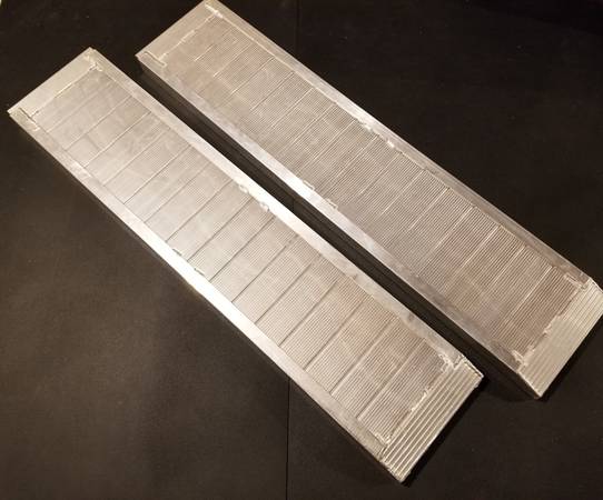 For sale is a set of aluminum ramps, which came with Aluma trailer. These ramps were never used. Serrated aluminum panels let your wheels get a grip, even in wet weather. And being aluminum they resist rust.