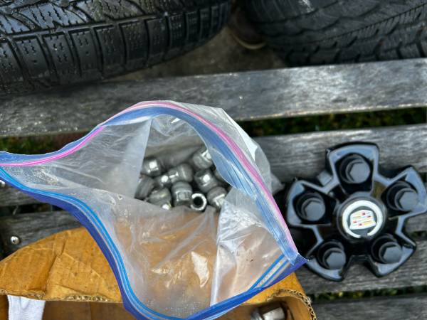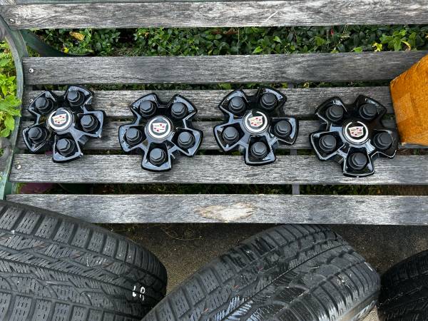 Firestone Winterforce 225/60R18 winter tires. Mounted on Camaro rims with TPMS sensors. Rim size are 18x7.5 with a 5x120 bolt pattern. The tires are almost new with 10/32” tread left from 12/32” new. They have been stored in my basement during the summers. Currently they have Cadillac emblems but I can convert back to the Chevrolet logo if desired.