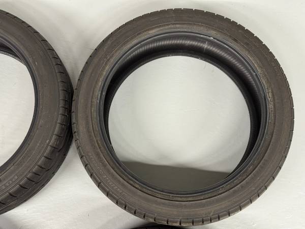 I got these off of 2018 Mazda MX-5 Miata when the car had less than 100 miles on ODO switching to all-season tires. I kept these as a spare, but sold the car before using them. They were stored in the basement where the temperature is kept at 70F and humidity at 50%. They were manufactured in 2017, so looking for someone who would wear them out in a few years.