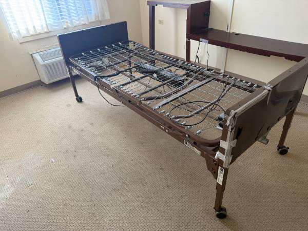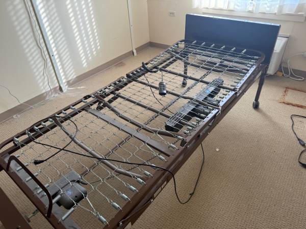 Free hospital bed frame, motor burned out. Good for metal scrapper or if you want to fix. On 4th floor, with elevator. You move it, I can’t help. Need gone asap. LEAVE PHONE NUMBER if interested