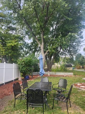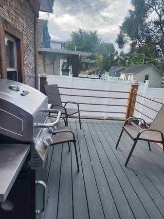a full bath, walk in closet, kitchenette, washer and dryer, office area, livingroom, balcony and a beautiful stone fireplace. This home has a fenced back yard with landscaping.