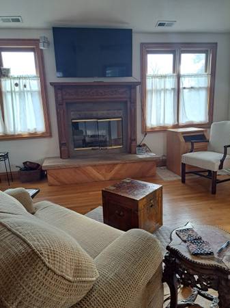 Beautiful sun porch. Bedroom on 1st floor, full bathroom and basement lots of storage. Upstairs has huge master suite with vaulted ceilings,