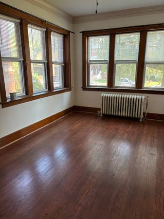 Spacious sunny 2 bedroom 1 bath apartment. Clean and neat, first floor with half a flight of stairs up; older well maintained building with hardwood floors, large closets, remodeled kitchen and full bath. All utilities included, heat, water, sewer, except you pay electrical and cooking gas. Detached one car garage.