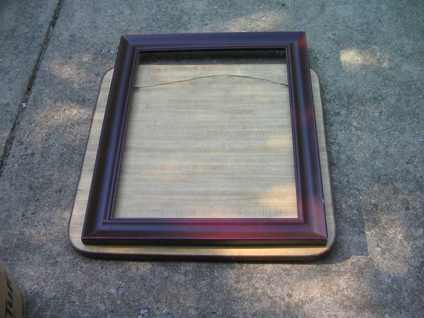 See attached photos. The oblong frame is 24" X 16". The burgundy frame is 28" X 22" Please call .