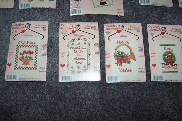 For your consideration a LOT OF THIRTEEN (13) VINTAGE (1980s) WHAT'S NEW COUNTRY WIREWORKS CROSS STITCH KITS as described below: