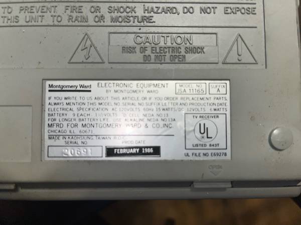 Vintage Montgomery Ward TV/Am-FM Radio Model JSA11165 in good working condition Yes available