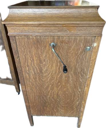 Very nice working phonograph. Could use cleaned and adjusted, but in working condition. Very cool conversation piece or room decoration. This is from the late 20’s.