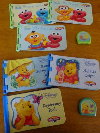 Comes with two books (Baby Einstein) that work with reader alone, two additional cartridges with 3 books each. Reader does work, but there is a glitch with the last two pages per book - it does not read them. Maybe you could play with it to make it work.