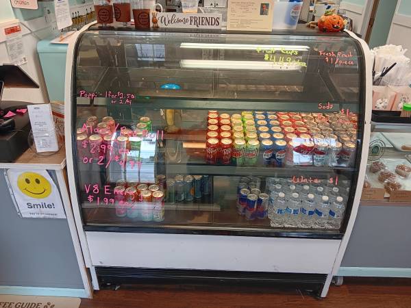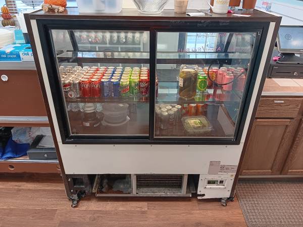 Display cooler for sale. Works great. Older commercial model. Details in pictures. PM questions. Can be viewed in person at Three Strands Cafe in Wheatfield... Now come the sales pitch.