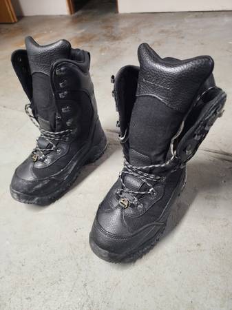 These boots are durable and are for below zero temperatures. They have only been use a few times and are in great condition. U.S. size says 9M. But the way the boot is designed in a snug way it is for a person who wears a size 8 shoe. Please text if interested.