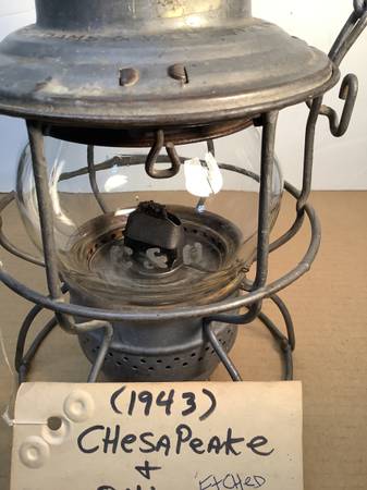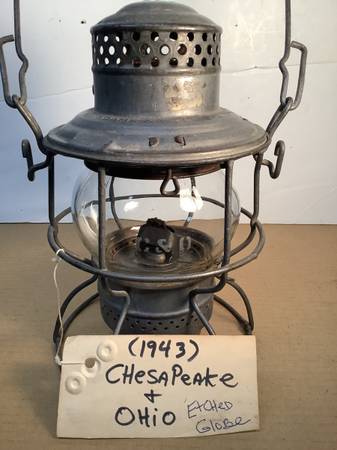 1943 Chesapeake and Ohio Railroad Lantern with Etched Globe. Call or Text ** No Emails **. No Shipping