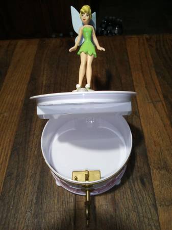 Tinker Bell Music Box With Key. No box or other figurine. It turns and plays music like it should. Any questions just ask. If this ad is up I still have it, don't even ask.