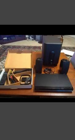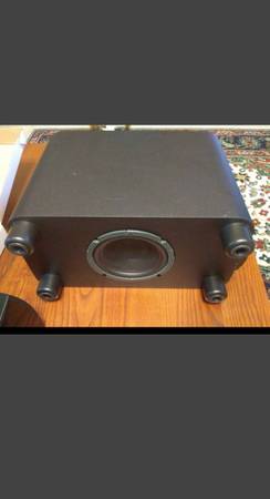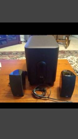 $80 - Original New Klipsch 2 Speakers & a Subwoofer ONLY - with a remote control ,NO DVD PLAYER that comes with this Home Theater also includes 2 connecting wires.