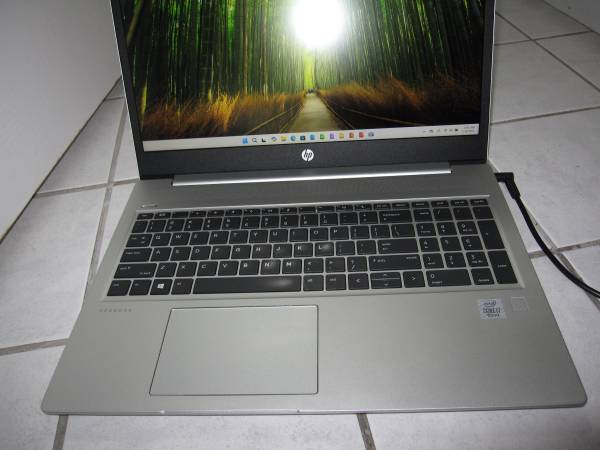 Up for sale we have a Hewlett Packard HP Probook 450 G7 with a 15.6" screen, built in web cam. Comes with an Intel i7-10510u processor running at 1.8Ghz, 16GB memory and a 256GB m.2 Nvme flash hard disk drive. Also comes with bluetooth, USB 3 ports, SD card reader slot, HDMI port, network jack, and a USB type C port.