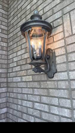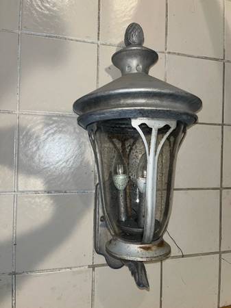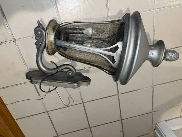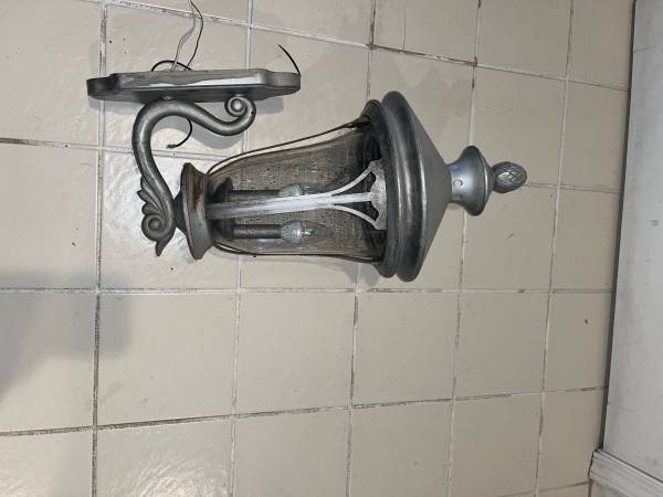 Overall good condition, A new paint will make it look new or paint to change color 3 bulb light fixture , LED Bulbs included Dimensions : Mounting plate about 11x5 inches Max height is about 24...