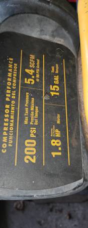 Dwalt air compressor with hose. $200 or willing to trade, send pics and information of trade items.