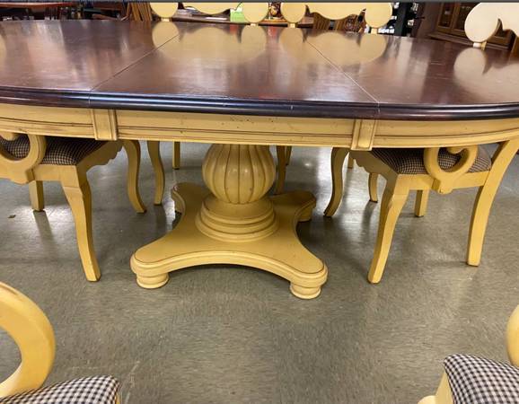 The Romance of the British and west Indies is captured in this stunning pedestal table with hints of exotic origins in the milling base. The additional 18”aproned leaf extends the table to 78” without the extension 60” round.