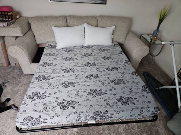 Beige Ashley sleeper sofa. Purchased 2022 for spare bedroom; never slept or even sat on.