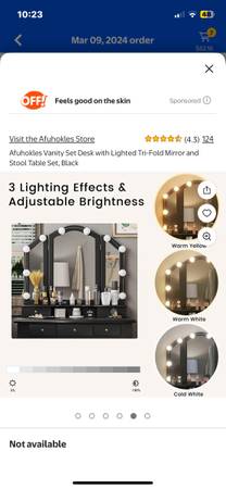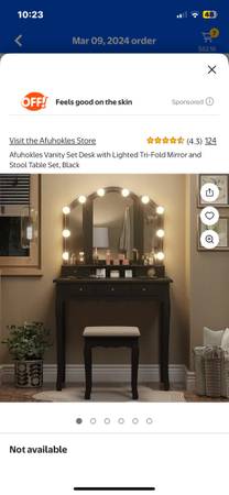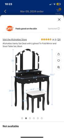 Vanity Set Desk with Lighted Tri-Fold Mirror and Stool Table Set, Black !!MIDDLE MIRROR IS MISSING!! can be replaced though everything else is perfectly fine. Can send actual photos upon request.