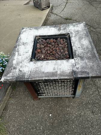 Condition as shown crack on top doesn’t affect functionality included are lava rocks, but not propane tank the flame height can be adjusted but the push start no longer works, I light it from the element on top with a lighter.