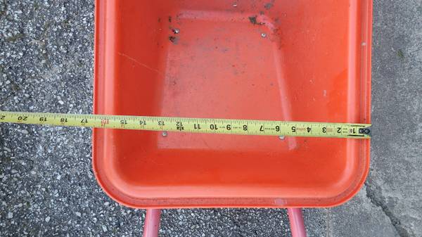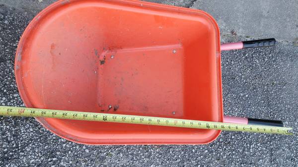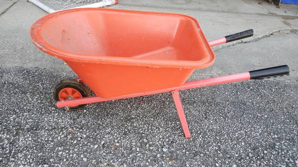 Lightly used children's red/orange wheelbarrow.