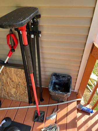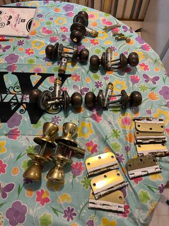 $20. Door knobs. Also door hinges, Yard Trimmer weed wrecker, Air blower , 6" construction screws, door knobs and hinges. yard tools