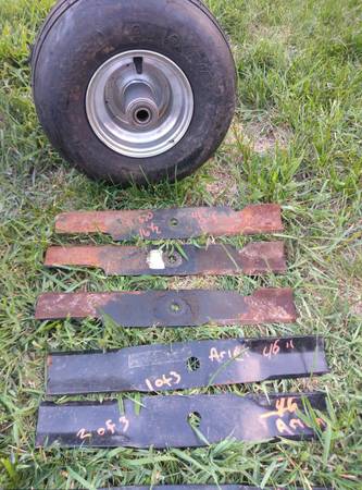 Misc stuff like to move. Rim and tire is new. I have 3 used and 3 new blades. Sold bag