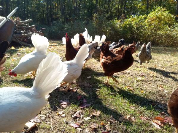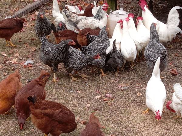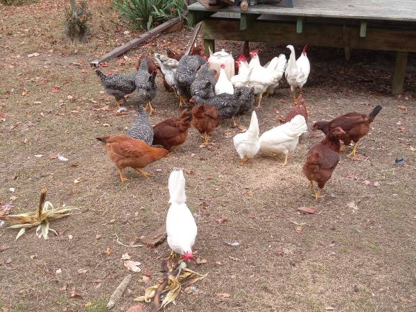 I have white leghorn chickens just started laying eggs $20 each and barred rocks and rhode island reds. Text me Paul for more information