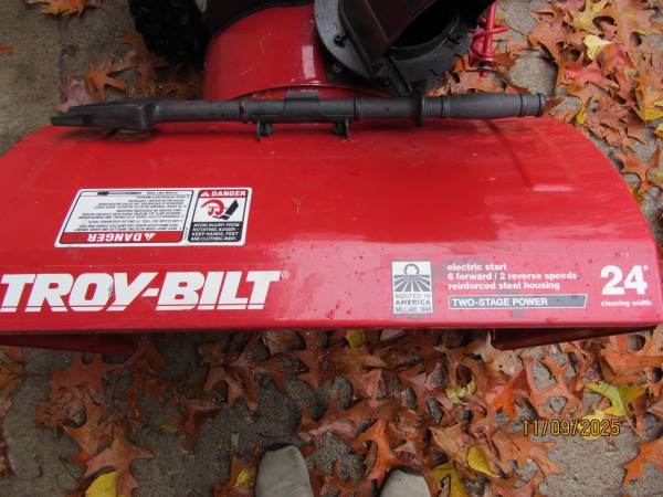 Troy Bilt Storm 2410 two stage snow thrower. 24 inch clearing path. 10 HP engine with electric start. Freshly serviced. 6 speeds forward. 2 speeds reverse. Never used. CALL ONLY PLEASE NO TEXT OR...