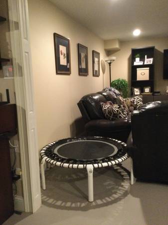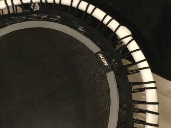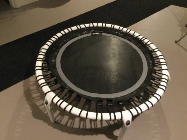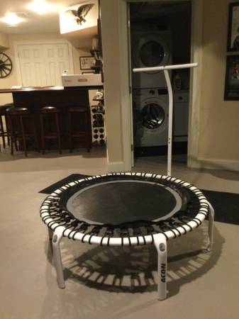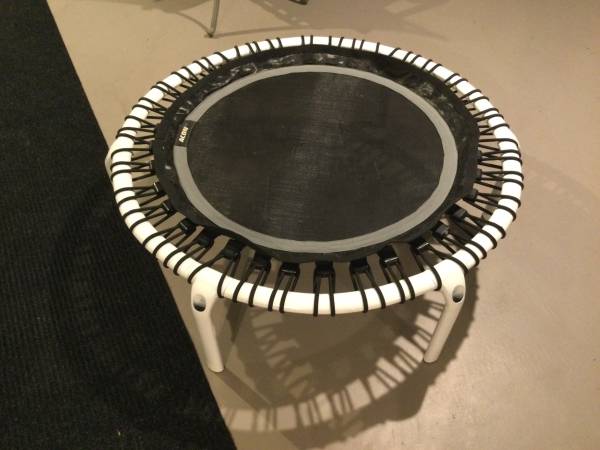 44” Diameter 31” mat trampoline with balance bar.