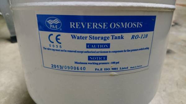 Used PA-E 1 gallon reverse osmosis water storage tank (RO-120). It was used for about a year and in working order when disconnected.
